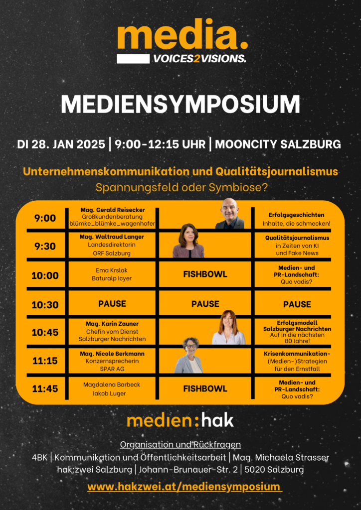 Am 28. Jänner 2025 fand in der MOONCITY Salzburg das Mediensymposium unter dem Motto „Media. Voices2Visions.“ statt.